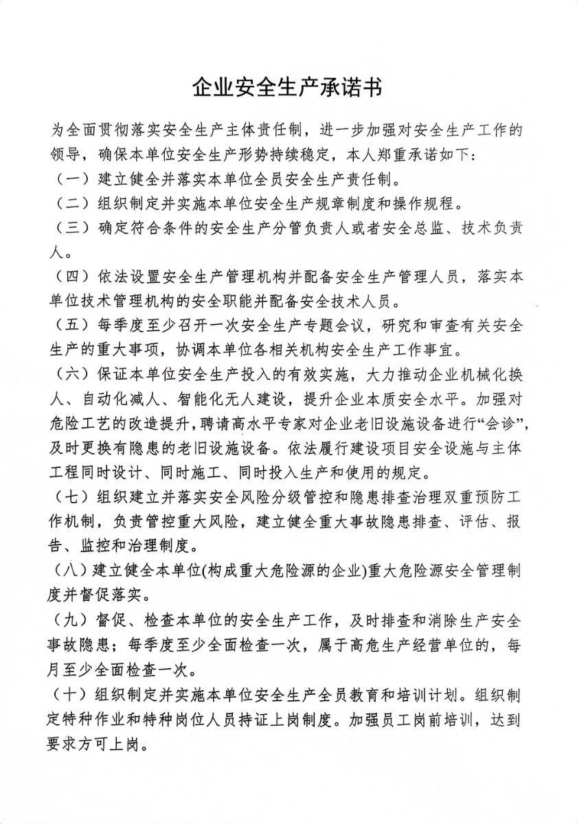企業(yè)安全生產(chǎn)承諾書(shū)